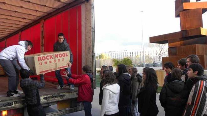 pamplona. Decenas de estudiantes del colegio Maristas de Sarriguren descargaron ayer los 1.500 juguetes recogidos en el Ayuntamiento, el colegio público y la fábrica Rockwool de Caparroso, en las oficinas de esta empresa en Barcelona y en Forjados Orgues de Murchante para que la organización Solidaridad-Educación-Desarrollo los distribuya entre familias necesitas. Esta acción forma parte del Proyecto Engloba de sostenibilidad que realiza Rockwool y que, según sus directivos, ha sido todo un éxito. Foto: cedida