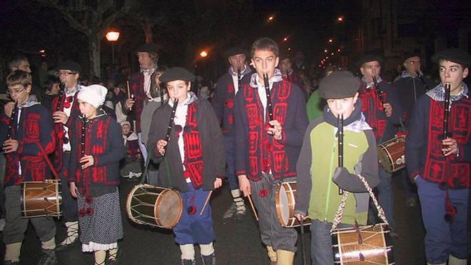 La numerosa y vistosa comitiva que acompañó a Olentzero en su recorrido, partió a las 18.30 horas desde el zaguán de la Casa de Cultura. En el cortejo participaron varios grupos musicales y folklóricos que llenaron de alegría y de colorido el singular desfile. Este cortejo lo abrían los joaldunak del zampantzar tafallés, con los sonidos acompasados y rítmicos de sus cencerros. Tras ellos se pudo ver a la comparsa de gigantes de la Ikastola, bandas de gaiteros y de txistularis; dos numerosos grupos de acordeonistas y de trikitixas y un nutrido grupo de dantzaris txikis, además de un pequeño carromato tirado por un burro desde donde se repartían vasos de vino y castañas asadas y por supuesto, un Oletzero txiki y por último el Olentzero aundi. Al final de la comitiva, un grupo de familiares y de amigos portaban una pancarta en la que reclamaban el acercamiento de los presos a Euskal Herria. Entre todos estos grupos, numerosos vecinos, los más pequeños acompañados de sus progenitores, ataviados con los típicos trajes caseros, chaquetas de kaikus y txapelas, todo ello dentro de un buen ambiente festivo.