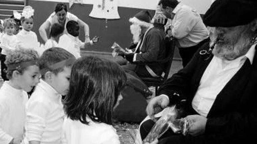 castejón. El colegio público Dos de Mayo de Castejón celebró su fiesta de Navidad con diez actuaciones de villancicos en castellano y euskera, cuentos y canciones. La fiesta finalizó con el rap de los de los alumnos de sexto curso que se hacen llamar Los raperos de Emaus. Tras el festival llegaron Papa Noel y Olentzero (en la fotografía), que repartieron regalos y chucherías. Foto: miguel ángel galilea