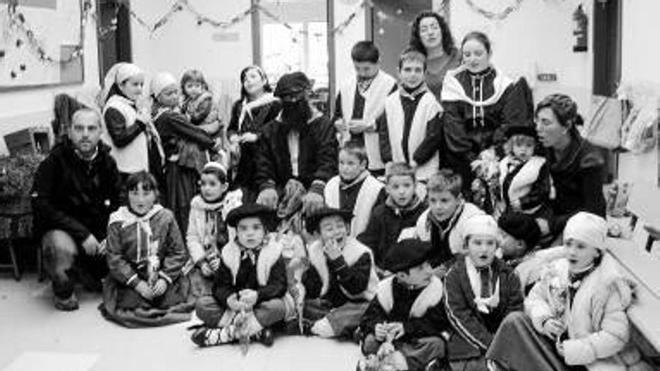 almandoz. El tradicional Olentzero, en su visita a los pueblos del Valle de Baztan, se acercó también a la herri eskola de Almandotz, que cuenta ahora con 21 alumnos y 3 profesores y una digna dotación de instalaciones después de décadas de ocupar unos locales inadecuados en la casa Jauregia. Los niños y profesores acogieron a Olentzero con alegría e ilusión y cantaron las típicas estrofas en honor del popular personaje. foto: N.P.
