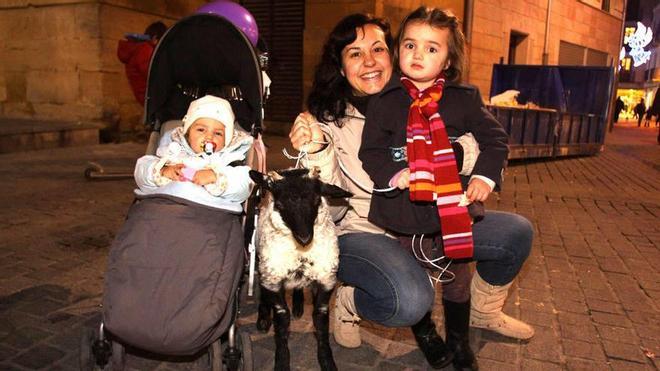 Las hermanas Lidia y Marta Cubillo, de 4 y 2 años, fueron agraciadas con un cordero durante la Novenica del Niño de Estella. El animal se sorteó el miércoles mediante una rifa con boletos en la iglesia de San Juan.