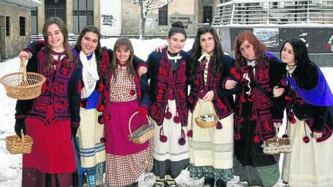 Desde las cuatro de la tarde, las 36 jóvenes quintas de este año se afanaron en la tarea. Abordando a vecinos y foráneos en la calle y también de casa en casa, apelaron a su generosidad, obsequiándoles con una copla. Para recoger el dinero que lanzaban de balcones y ventanas, las quintas extendían una sábana, que ayer apenas se veía entre tanta blancura. Y es que la villa parecía Siberia, cubierta de un blanco manto y un cielo encapotado del que caía una fina pero incesante nieve.
