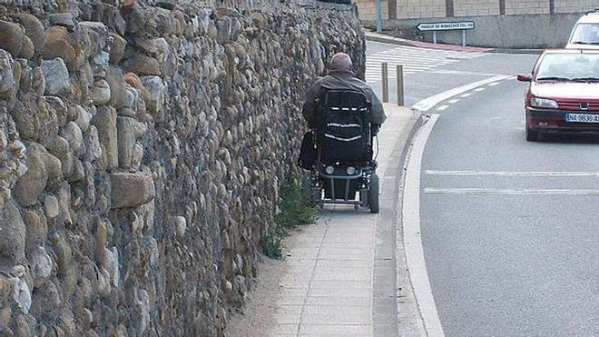 poca anchura Los afectados explican en su estudio que el ejemplo más significativo es, quizás, la acera desde la que se accede de la avenida de Pamplona a la calle Valmayor, en el barrio de Camineros. Según indica el arquitecto de Amife, Miguel Martínez de Morentin, esta tiene 80 centímetros de ancho, cuando la legislación actual establece que las aceras deben llegar a 180. "El tramo previo al inicio de la calle Valmayor presenta una anchura insuficiente de hasta 80 centímetros. Esto dificulta la circulación de sillas de ruedas. Además, debido a la intensidad del tráfico supone un peligro para cualquier peatón, especialmente para niños y personas con movilidad reducida", indica el técnico en su informe. A ello hay que añadir que en una curva se han colocado unos bolardos sobre la acera después de que un camión se saliese de la calzada, superase la acera y se empotrase contra una vivienda. "El paso es aún más complicado por los pivotes, ya que los colocaron sobre la acera", explica el vecino de Valmayor Rafael Fonseca, que habitualmente dirige una silleta infantil doble. A todos estos problemas, concentrados en esa única acera, se suma también el ramaje que ha crecido casi a ras de suelo y complica el tránsito por la misma.