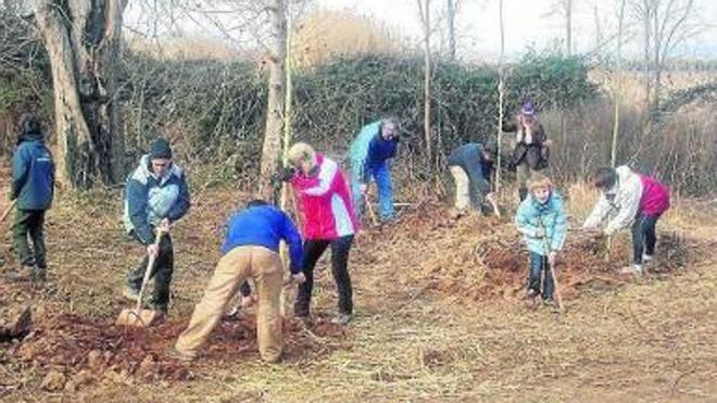 urzante. Un total de 30 chopos y árboles frutales fueron plantados el pasado domingo en el entorno de Fuente Tura, término de Urzante. Esta actividad, promovida por los colectivos Muérdago de Cascante e Historia de Murchante contó con más de 20 voluntarios. Se celebró un almuerzo en el palacio de Urzante y un coloquio con Marta Gómara y Gregorio Aguado.Foto: d.n.