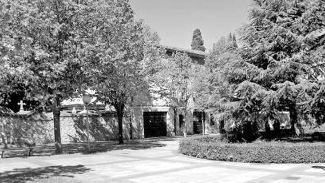 Hoy en día - Las únicas dificultades para reproducir la foto de 1909 vienen dadas por los árboles de gran porte que han proliferado para dar sombra al lugar, y tras los cuales adivinamos el edificio de entrada al camposanto. Sabemos que fue erigido por el Ayuntamiento en 1832, por lo que tenía ya 77 años cuando se hizo la foto vieja. Hoy en día permanece aún reconocible, con sus tres puertas en planta baja, aunque le falta la espadaña con la campana y se ha alterado el número y la ubicación de las ventanas.