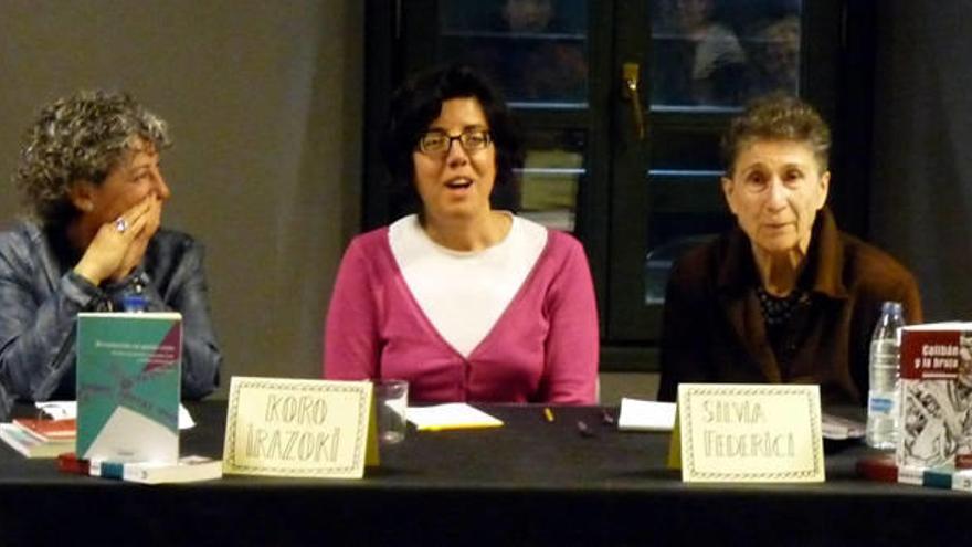 Con el auditorio abarrotado, Federici destacó que "más del 90% de los acusados eran mujeres, miles de mujeres en la Europa Occidental que fueron asesinadas en circunstancias terribles y acusadas de crímenes horrendos" y falsos. Tras analizar muchos casos de persecución de la brujería en la Europa Occidental, la investigadora afirmó que" en algunas ocasiones tuve que dejar de leer los documentos porque se me llenaban los ojos de lágrimas".