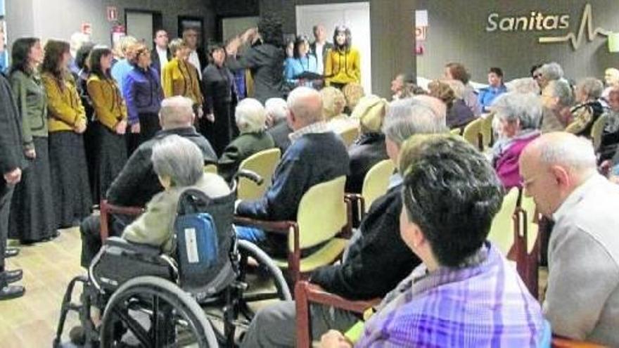 concierto. La coral Erkudengo Ama de Alsasua actuó ante residentes, familiares y trabajadores de la residencia Sanitas Residencial Luz de Estella. Según explicaron desde el centro, el recital fue muy valorado y aplaudido por los asistentes. Así, desde la residencia Luz destacaron que “era la primera vez que nos visitaban y nos hicieron pasar una jornada muy bonita disfrutando de sus voces. Desde aquí les damos nuestro agradecimiento”, señalaron. La coral Erkudengo Ama desplegó un variado repertorio en este concierto en la Ciudad del Ega. Foto: cedida