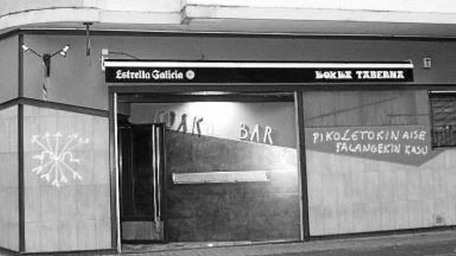 altsasu - El bar Koxka de Altsasu, en cuyo exterior se produjo el altercado en el que resultaron heridos dos guardias civiles y su parejas las pasadas Ferias, amaneció ayer con pintadas y el símbolo de la Falange, pintadas que fueron eliminadas por la mañana. Ponía Pikoletokin aise, Falangerekin kasu, que se podría traducir por “Con los picoletos fácil, cuidado con la Falange”.