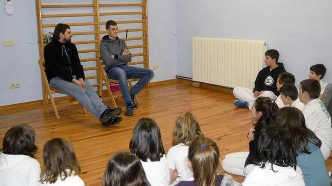 La tarde comenzó con una fotografía de grupo en la que se dieron cita los alumnos del club. Después, el pelotari profesional Unai Laso, natural de la cercana localidad de Bizkarreta-Gerendiain, dio una charla sobre su trayectoria deportiva y respondió a las preguntas de los chavales, que aprovecharon para sacarse unas fotos y pedirle un autógrafo al delantero de Asegarce.