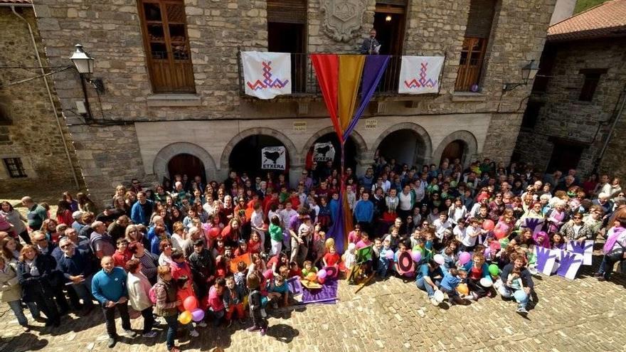 Por eso eligieron la trenza como logotipo, y ayer la elaboraron con telas de colores del traje de roncalesa: morado, rojo y dorado como parte del acto de apertura en el que participaron representantes y colectivos de todo el valle: Vidángoz, Uztárroz, Urzainqui, Escuela de Pelota Toki Ederra, Escuela Infantil, Roncal, Burgui, Gaztelu ( grupo de mujeres), dispuestos en forma de media luna en torno a Garde, el anfitrión. A las puertas del ayuntamiento participaron juntos en el Mannequin Chellenge (desafío maniquí), con canción, suelta de globos y aires de fiesta. “Desde que en 1997 se puso en marcha esta iniciativa, han sido muchos y muy variados los temas alrededor de los cuales se ha celebrado esta fiesta. Este año hemos decidido dedicarlo a la mujer roncalesa en un intento de reconocer algo de lo mucho que ha supuesto y supone su aportación a nuestra cultura y a nuestra manera de ser”, expresaron las voluntarias de la comisión organizadora.