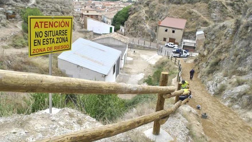Se trata, en primer lugar, explicaba Ciriza, de la zona desde la que el año pasado resbaló la pamplonesa que acabó falleciendo y en la que han colocado un madero de protección como los que existen en otros puntos del recorrido. En este punto, además, han dejado una señal para que nadie se coloque debido a la proximidad del precipicio.