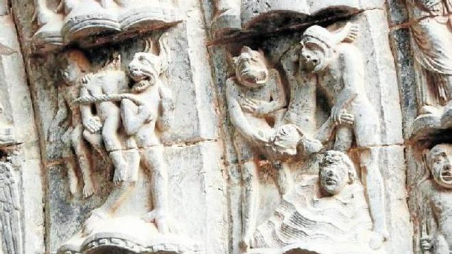 COMO si se tratara de una pantalla gigante colocada sobre la entrada a la catedral de Tudela, la Puerta del Juicio servía para adoctrinar y divulgar los horrores que acechaban a aquellos tudelanos de los siglos XII y XIII (y a todos los de los posteriores) y dar a conocer las consecuencias de llevar una vida pecaminosa y jugar con el demonio. Así, a todo color (tal y como relatan los periodistas Carasusán y Aldanondo en su libro sobre esta gran obra de arte), los fieles veían qué debían hacer y qué no para que su destino se encaminara con los monstruos del lado derecho de la puerta o con los santos del lado izquierdo. La intención, más que didáctica, era adoctrinador y tratar de sujetar a la “fe verdadera” a los vecinos de una población iletrada. Nueve siglos después, lo que era un libro de piedra explicativo queda como una gran obra de arte abierta al público y que necesita una urgente restauración para que no desaparezca.