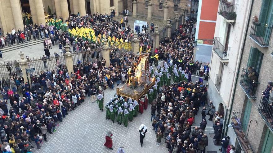 En Pamplona, el acto está organizado por la Hermandad de la Pasión, propietaria de 12 de los 13 pasos de los que consta el cortejo, cerrado por el único de propiedad del Ayuntamiento de Pamplona, el de la Dolorosa, de gran devoción y que protagoniza su propio momento cuando, finalizada la procesión, es trasladado en solitario a la iglesia de San Lorenzo, donde se venera todo el año.