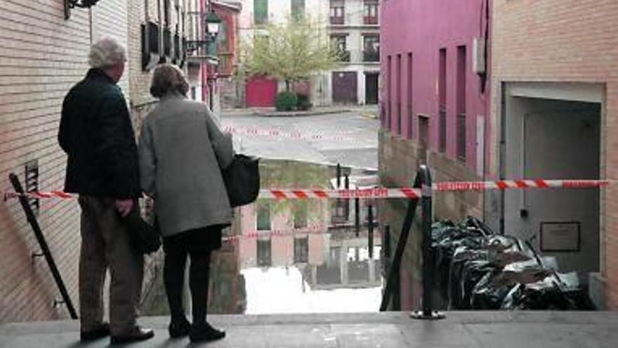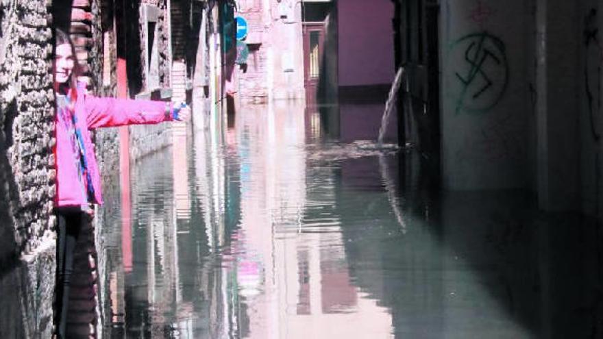 l En calle Verjas. El agua alcanzó los 80 centímetros de altura en algunos puntos, muy lejos del 1,65 que marcaba la riada de 2015.