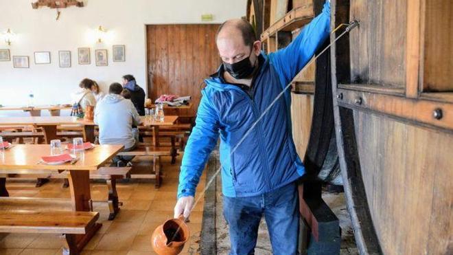 Hace casi un año desde que Jesús Ángel García decidió cerrar las puertas de la sidrería Larraldea, den Lekaroz, un día antes de que se decretara el estado de alarma y por consiguiente, el cierre de todas las actividades declaradas no esenciales. Cincuenta semanas más tarde, por fin, este sábado ha podido abrir las puertas de su establecimiento, con ganas, ilusión y bastante incertidumbre, "abrimos, pero sin saber si nos dejarán mantenerla abierta hasta el final de la temporada", señala. Y es que el año pasado, si bien pudieron comenzar la temporada como siempre, cuando empezaba la temporada alta, hacia primavera, tuvieron que echar el cierre. Fue un duro golpe para todo el mundo, también para la sidrería. Curiosamente el año pasado Larraldea fue la encargada de abrir la temporada de txotx. Es una de las cinco sidrerías, la más veterana, que componen la Asociación de Productores de Sidra de Navarra Dolarea (lagar), junto a Linddurrenborda, de Lesaka; Behetxonea, de Beruete; Martitxonea, de Aldaz, y Toki-Alai, de Lekunberri. En ellas se produce la llamada "sidra artesana de ciclo cerrado", que incluye todo el proceso, desde el cultivo de la manzana y su procesado hasta el embotellado y la venta de la sidra. Cada año, una de las cinco sidrerías se encarga de organizar el primer txotx de la temporada, que da el pistoletazo de salida a la temporada sidrera. Este año no se pudo empezar la temporada como siempre en enero, pero tenían todo preparado para celebrar el primer txotx el 23 de febrero en la sidrería Toki-Alai, pero el cierre de la hostelería lo imposibilitó. Han pospuesto el acto hasta el año que viene, "porque con las medidas que hay tampoco tiene mucho sentido".