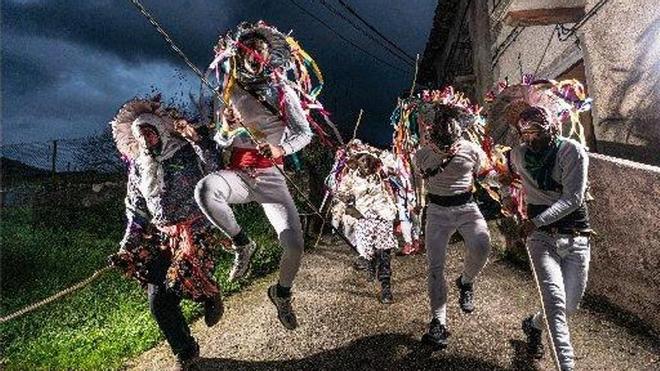 Durante siglos se han sucedido las carreras para sortear el urritza, la vara de avellano que blanden mamoxarroak y mutuak a los pies de sus víctimas. Distinguirlos es fácil. Mientras los primeros van vestidos de blanco con faja y un cinturón con panpaxilak o cascabeles, los mutuak visten de mujeres y sin eskilak, de ahí que se les llame mudos. Ambos personajes comparten la katola, una máscara de chapa, algunas centenarias. “Son máscaras que muestran creencias; que dan vida a retos ancestrales, a personajes que, ocultando su rostro con ellas, persiguen y fustigan, que buscan rendijas para entrar, que con frecuencia meten miedo en el cuerpo”, señala Hualde en el prólogo. “Son máscaras que se alían con el misterio, con el enigma, con la mitología y con el desconocimiento de su origen para sobrecogernos aún más”, añade.