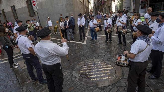 on buen tiempo y una pequeña tregua con la pandemia, Pamplona vivió ayer un San Fermín Txikito un poco más grande. Tras un año de parón, en un formato reducido por las restricciones del coronavirus y en colaboración con la Federación de Danzas, Navarjota celebró de nuevo la Concentración de la Jota Navarra San Fermín de Aldapa-San Fermín Txikito. Sirvió de homenaje a Javier Erice Astiz y Juan Pedro Aramendía García, referentes de la jota navarra bailada. "En esta tierra tenemos mucha riqueza y queremos potenciar la jota cantada y bailada con actos comunes", dijo Laly Jausoro, presidenta de la asociación. Puso el ejemplo de Las Pamplonas, versión que se canta y baila. De bailar sabían mucho los dos homenajeados ayer.