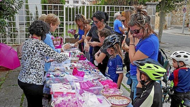 Sin pisar los pueblos desde la declaración del estado de alarma, voluntarias de Saray volvieron este sábado a la calle con su mercadillo solidario en Olazti, el pueblo de su presidenta, Marijose Oraa. Y es que su puesto rosa suele ser habitual en diferentes eventos que se organizan por toda Navarra, en torno a una docena al año, otra fuente de ingresos para avanzar en la investigación del cáncer de mama.