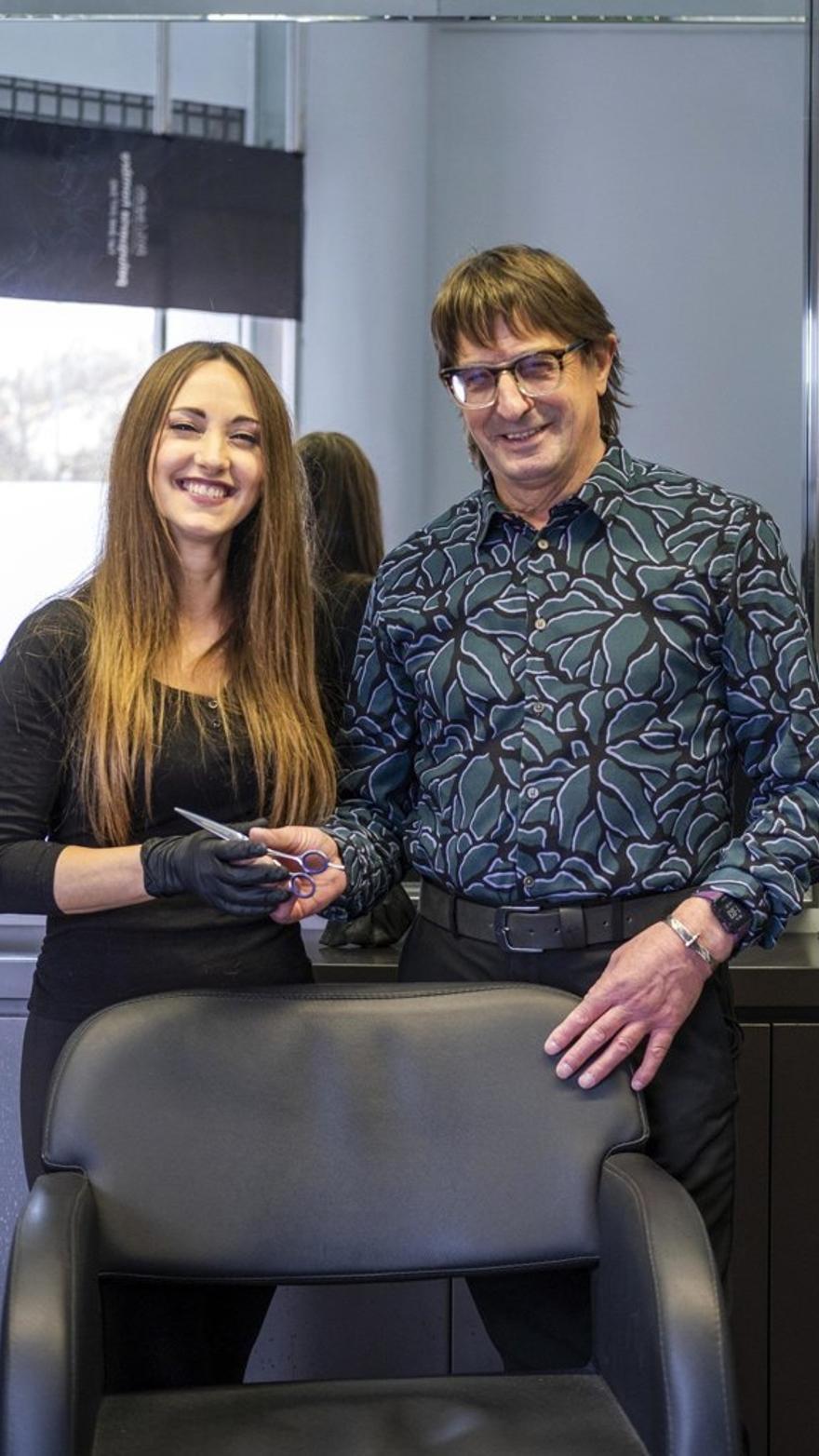 El peluquero saliente bendice a la peluquera entrante. Un relevo que le deja contento. Al quedarse no se acaba. Tiene los clientes, la continuidad... de alguna forma pienso que yo me quedo un poco, que no me jubilo del todo".