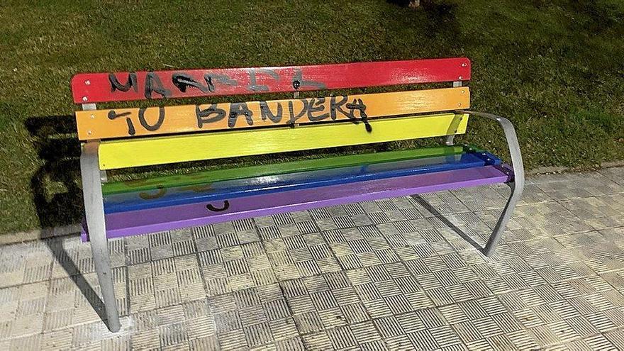 - Un banco pintado con los colores del arcoíris apareció vandalizado este fin de semana en Sarriguren con unas pintadas que transmitían un mensaje de odio. Se trata de uno de los bancos instalados por el ayuntamiento del Valle de Egüés en apoyo a un joven transexual que fue agredido el pasado año y en homenaje al colectivo LGTBI+. Diversos grupos municipales condenaron la acción en redes sociales.