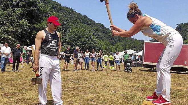 Había muchas ganas de reencuentro, de fiesta y hermanamiento entre los vecinos de los ocho pueblos del valle después de dos años de paréntesis por la pandemia. Y así fue, la campaña de Sorabil, menos verde que ningún año por la sequía, desafío las altas temperaturas que rozaron los 40º grados al mediodía, para servir de escenario a las diferentes actividades organizadas con motivo del esperado día del valle. Puestos de artesanía, deporte rural y juegos infantiles amenizaron la mañana y calentaron motores para la comida popular que albergó a cerca de 400 personas y en la que se rindió homenaje al pelotari Unai Laso. Muchos se quedaron sin chartela para la ocasión y tuvieron que conformarse con los ricos talos que preparó el equipo de Saldiasko Taloa liderado por María Mitxelena. Y es que había talos combinados de talo con panceta, hongos y queso que hicieron las delicias de vecinos y visitantes. El mercado de artesanía reunió a más puestos que nunca entre los que destacaban los colores de los collares y pulseras de macramé de la vecina de Aria Itziar Berruezo, mieles artesanas como las que daba a saborear Iñaki Garciandía de Lizoain, los juegos de madera de Peio Olea de Bakaiku, las sillas de Peio Carrascón de Azagra, las fotos pictórico artísticas de Laura San Miguel o las piezas de plata de Txus Bruzeta de Salvatierra de Álava, entre otros. Público de todas las edades pudo asistir también a la exhibición de aizkolaris, en la que participaron Manolo y Oier Cañamares, y la pareja formada por Malen Barrenetxea y la jovencísima Bea Tanco, así como la prueba popular de corte con tronza.