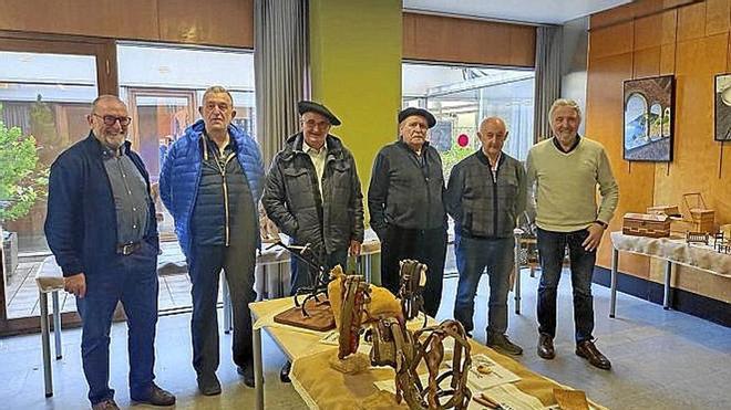 Agustín Guillén, Miguel Valencia, Gabriel Lizarbe, Luis Ayerra, José Luis Vicente e Isidro Olcoz, de la Asociación de Jubilados de San Sebastián, han mostrado durante esta ferias su destreza y habilidad para la artesanía y el arte en la exposición que han realizado en el Centro Cívico de Tafalla, que se estrenó el jueves pasado y está disponible hasta hoy.