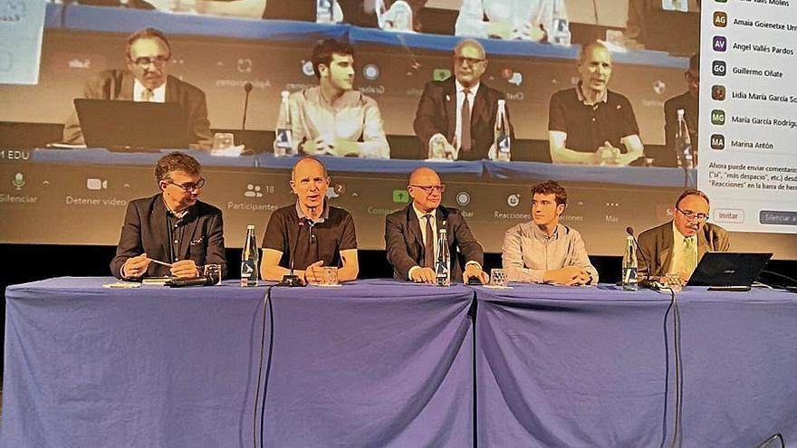 La jornada estuvo presidida por Carlos Gimeno, Consejero de Educación en funciones; Xabier Alcuaz, alcalde de Tafalla; Alfonso Huarte, director del IES Sancho III el Mayor; Pere Marquès, de DIM-EDU; y Javier Ibáñez, presidente del encuentro, quienes a su vez, también inauguraron la cita de manera oficial.