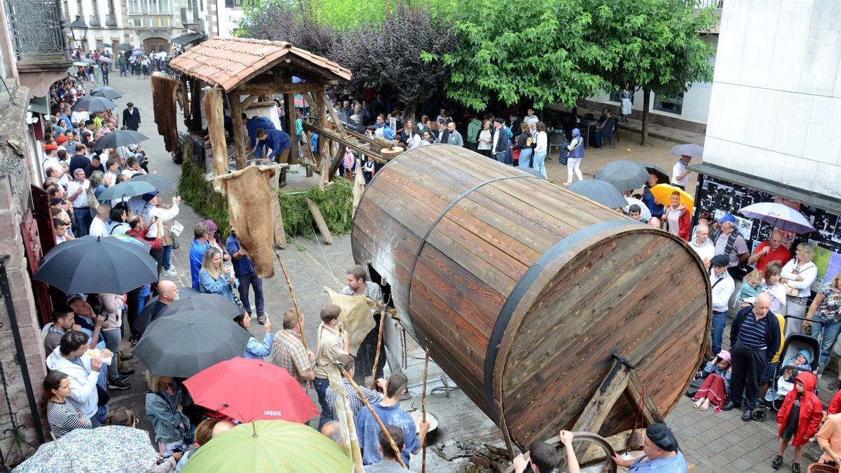El segundo premio ha sido para el pueblo de Ziga, una carroza que llamaba la atención sobre todo por el gran barril en el que curtían la piel que después se empleaba para la elaboración de zapatos y la originalidad y complejidad de la idea.