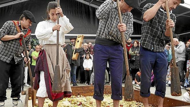 Al mediodía se recreará la kirikoketa, ritual ligado al proceso de pisado y trituración de la manzana, cuando varias personas, con los pies desnudos y unas grandes mazas de madera, golpean rítmicamente sobre las manzanas dispuestas en tablones. Y es que anuncian el final de este laborioso trabajo para dar lugar a un momento de celebración en el que, al igual que la txalaparta, fluía la alternancia e improvisación de ritmos en un ambiente festivo.