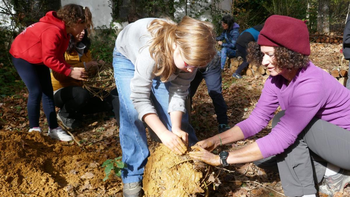 Lo cierto es que después de que otras generaciones los cuidaran con mimo, en pocos años se llegó al abandono de muchos castañares. Su fruto fue durante siglos un elemento básico en la dieta, un alimento nutritivo y saludable que se puede consumir en mermelada, paté o enteras con especias, entre otros productos elaborados por Gilles Texier, de Lapurdi, bajo la marca Gormutxa. Además, llevó un un artilugio realizado con ingenio para pelar castañas con un motor de lavadora que se pudo ver en funcionamiento. A lo largo de la mañana también hubo talleres. Para los txikis era de Art-Lad, arte con elementos de la naturaleza y para adultos de cestería. Por otro lado, Mikel Lasarte talló en un viejo tronco el rostro de Basajaun, un nuevo habitante en este bosque, cerca de un duende que realizó el pasado año. Asimismo, se pudo ver una exposición de relatos y dibujos aí como un vídeo sobre los castañares realizado en la Escuela de Larraintzar. l