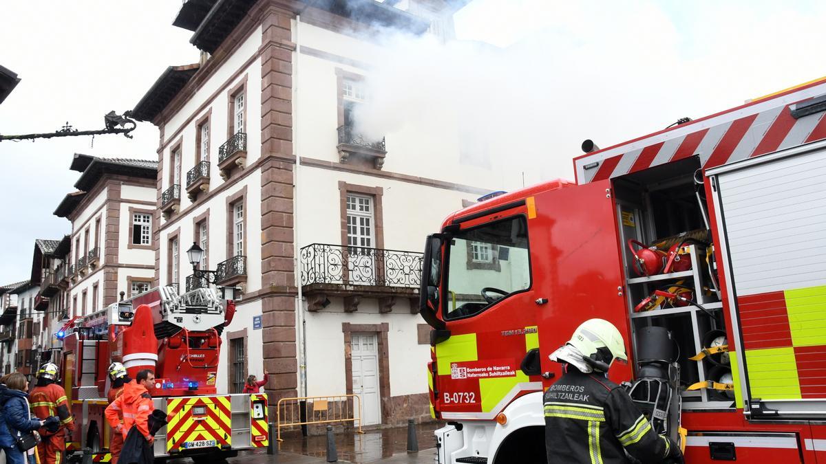 Sonido de sirenas rompía hoy sábado la tranquila mañana en las calles de Elizondo. Una extensa humareda que salía de una de las ventanas del segundo piso de la Casa de Cultura Arizkunenea sobresaltaba a sus vecinos, en el interior se encontraban atrapadas dos jóvenes que necesitaban ser rescatadas del incendio. Inmediatamente acudieron al lugar efectivos de bomberos y personal sanitario, que pusieron en marcha una espectacular operación de rescate a través de un camión escala de los Bomberos de Hendaia.