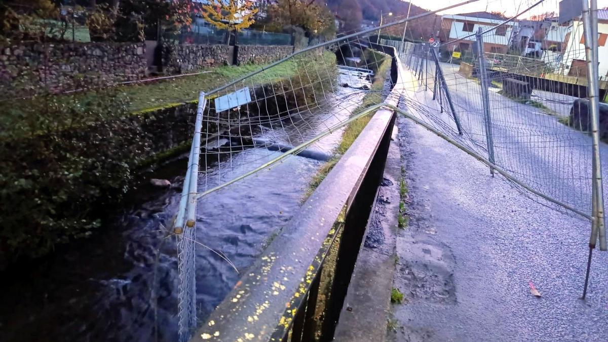 Con motivo de las obras de la calle Altzate se había acondicionado mediante vallas una acera peatonal y en un acto deplorable fueron arrojadas a la regata Zia y otras rotas o fuera de sitio creando una situación de peligro importante.