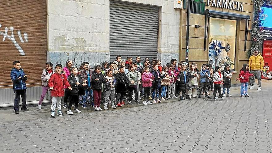 La jornada de este jueves de mercado en Estella-Lizarra, con los puestos repletos en las plazas de Santiago y de los Fueros, sirvió también para que varios grupos de alumnos y alumnas de algunos centros recorrieran las calles de la ciudad entonando villancicos. Es el caso de este grupo del colegio estellés de Santa Ana que deleitaron a los viandantes con varias canciones y sus correspondientes coreografías.