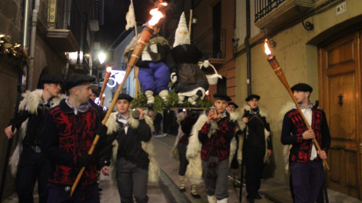 Concurrido recibimiento el que dio Lumbier a Olentzero y Mari Domingi, que partieron de las Bodegas Azpea entre la luz de las antorchas hasta llegar a la localidad. Al son de la txalaparta y precedidos por el Zanpanzar y gaiteros, recorrieron las calles acompañados de numeroso público, txistus, txaranga con habituales paradas en Casa Martintxo y Casa Rojas; lunch, Kantuz y excepcional ambiente hasta el acto de la plaza, en la fría Nochebuena.