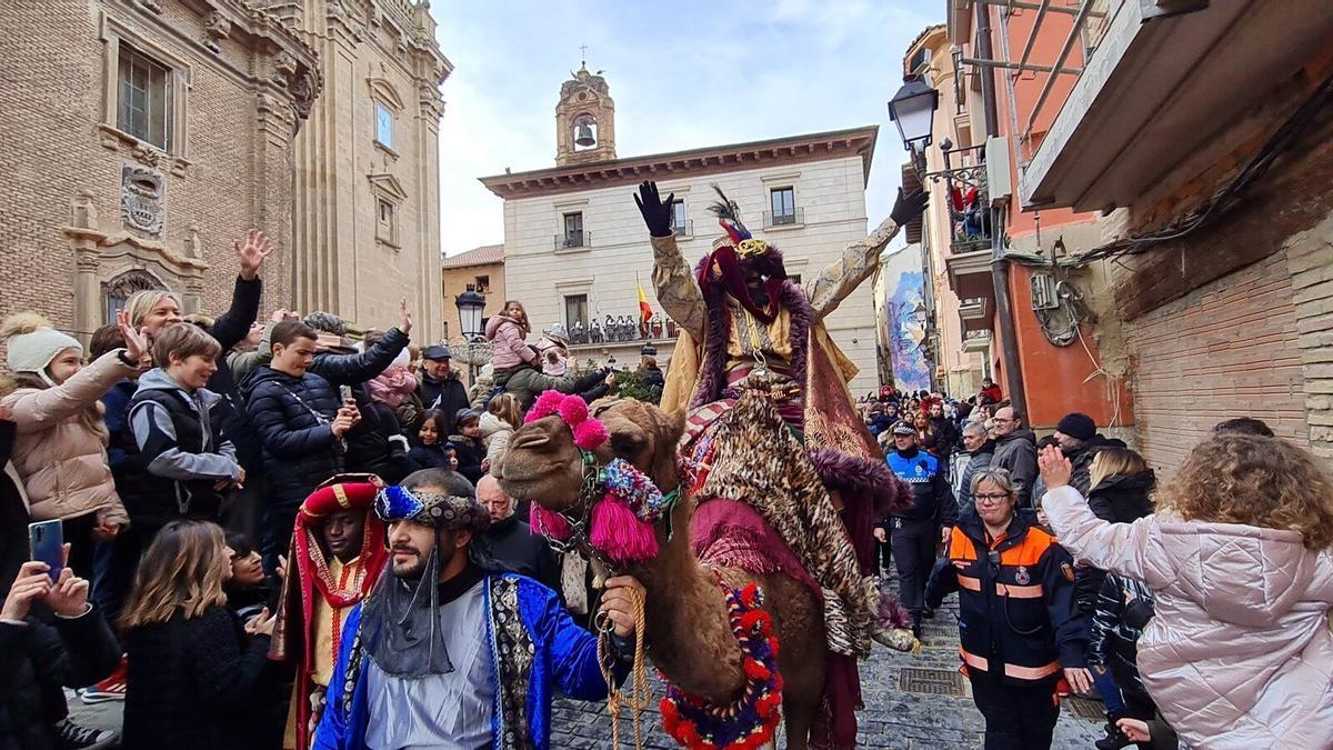 Por la mañana los reyes llegarán en dromedario y les anunciará el Heraldo Real, que será la tudelana Edurne Miramón a caballo, para la que se ha realizado un vestido a medida. También participará la banda de trompetas y tambores de Murchante que estrenará una obra desde el balcón del Ayuntamiento cuando suban os reyes. Tras la entrada por el puente seguirán por la calle Concarera para subir por la iglesia de San Nicolás y calle Rúa hasta la plaza Vieja donde serán recibidos por la Corporación.