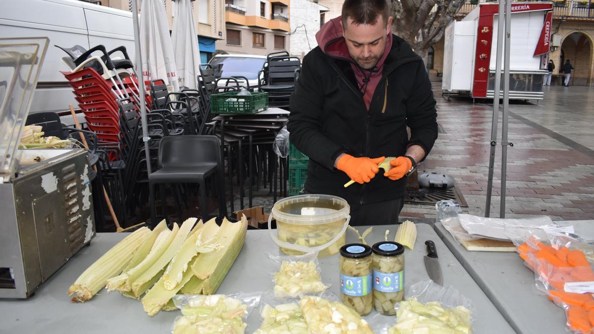 En esta jornada también ha habido talleres infantiles, una degustación de cardo, pintxos por los bares y una feria de gastronomía (talos, quesos, embutidos y dulces) y de artesanía. Uno de los puestos que no ha faltado a la cita ha sido el de la Frutería Hermanos Jiménez 'Moroto'. Allí estaba Dany Jiménez pelando con mimo el cardo al tiempo que aseguraba que la gente se lo llevaba tanto al natural, como envasado al vacío para ensalada (medio kilo) o para cocer (un kilo), así como en conserva, una novedad que está funcionándoles muy bien.