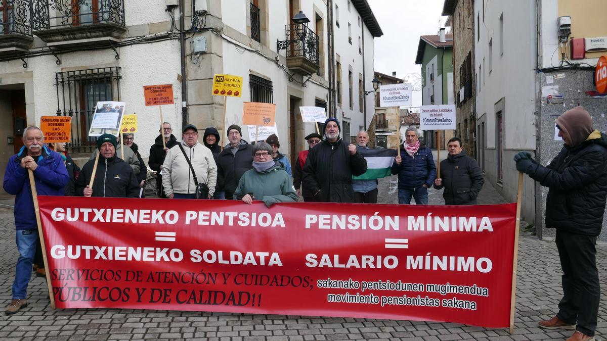 Se cumplen ocho años desde que miles de pensionistas salieron a la calle en protesta por la subida del 0,25% en las pensiones tras los recortes de las reformas de 2011 y 2013 y la congelación de las pensiones. Desde entonces, pensionistas de Sakana se concentran todos los lunes al mediodía en Altsasu, con lluvia, nieve o sol, alternando cada semana entre delante del Ayuntamiento y la plaza Zumalakarregi. No fallan ninguno, salvo en vacaciones, con una media de 20 personas.