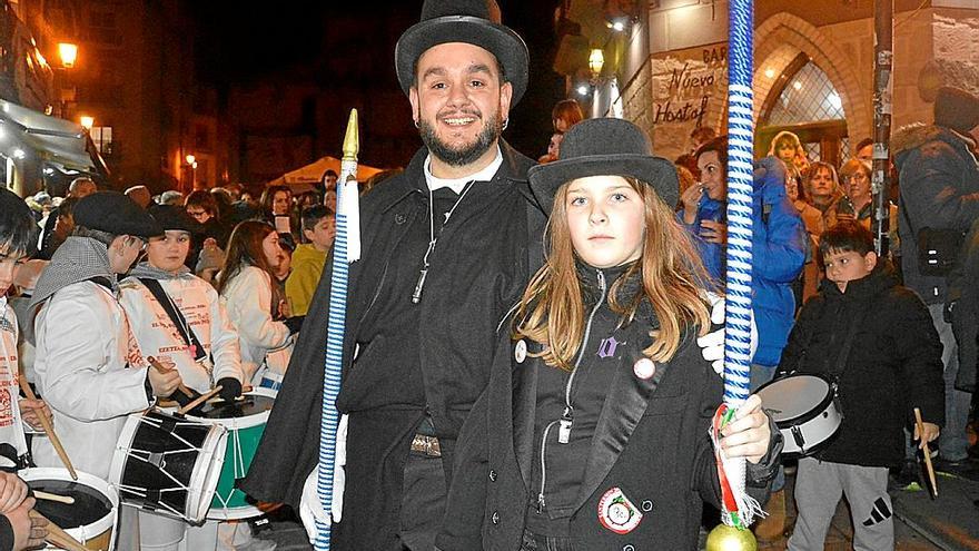 Oscar Cabezón, fue el mando de la comitiva, como viene siendo habitual los últimos años. Esta vez le acompañaron Lukene Echapare, de 3° de Infantil e Iraia Rekalde, de 5° de Primaria, ambas alumnas de la Ikastola. Ataviados con gorros, txapelas y mandarras de cocinero, los tamborileros recorrieron las calles principales del Casco Antiguo, partiendo a las 19:00 desde el Rincón del Paje y realizando una ronda circular de varias paradas hasta terminar en la Plaza de Navarra en algo más de una hora.