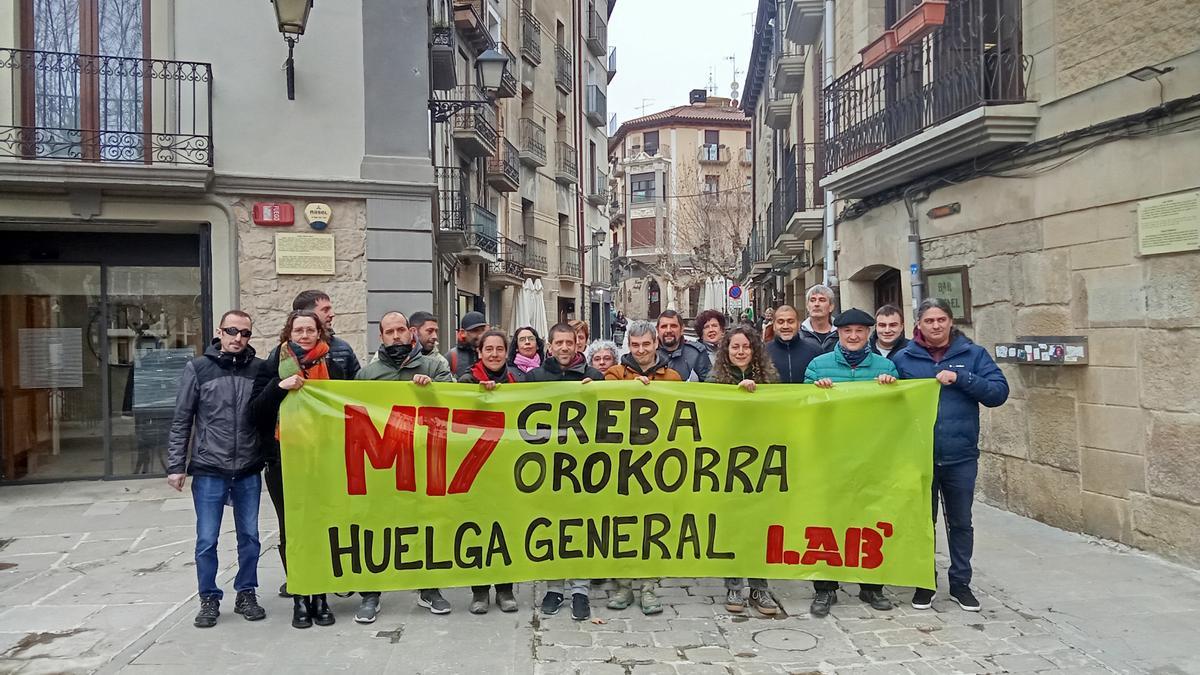 Delegadas y delegados del sindicato LAB en la comarca de Tafallaldea–Erribera Erdialdea han realizado un llamamiento a secundar la Huelga General convocada para el próximo 17 de marzo. El anuncio se produjo tras una asamblea comarcal celebrada en Tafalla, en la que se abordó la preparación de la jornada de paro en los centros de trabajo. Según informó el sindicato, en las próximas semanas LAB intensificará las labores de difusión de la convocatoria entre las y los trabajadores, con el objetivo de explicar los motivos de la huelga y fomentar la participación. La central sindical ha hecho un llamamiento a “vaciar los centros de trabajo y llenar las calles” para reclamar un salario mínimo propio para Euskal Herria y una mejora general de los salarios.