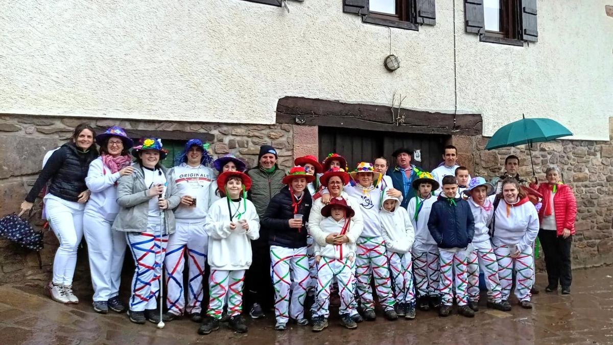 Tras almorzar en Harriburua, y a pesar de la lluvia, una buena cuadrilla junto al acordeonista Iñaki Agirre de Aintzialde, recorrió los caseríos Laxkanberri, Apezenea, Martineko borda, Ernautenea, Xokoko borda, Berekotxeko borda, Oilategie y Askoko borda, donde recibieron cariño y algo de comer y beber.