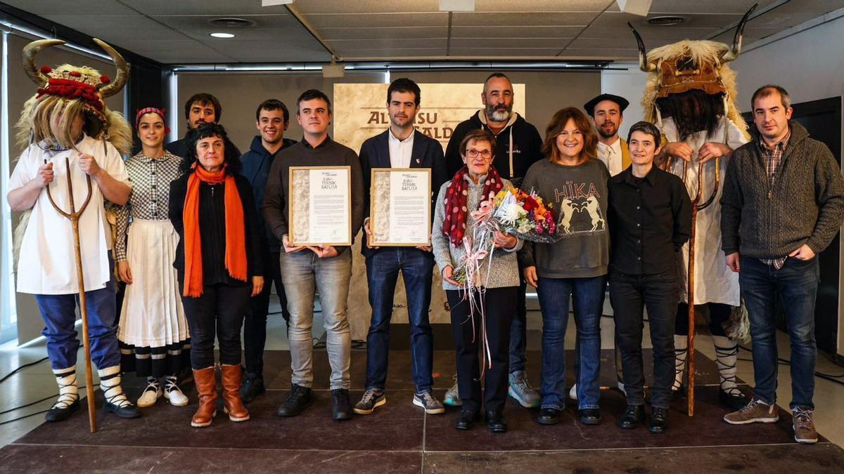 Este pasado sábado se formalizó en Galdakao el hermanamiento de esta localidad vizcaína con Altsasu, dos pueblos unidos por el carnaval rural. Y es que se recuperó en 1982 gracias a Andra Mari Dantza Taldea de Galdakao con la colaboración de altsasuarras como Enrike Zelaia, Patxi Goikoetxea y Satur Leoz. Así, los alcaldes de ambos municipios, Iñigo Hernando y Javier Ollo, rubricaron los acuerdos aprobados por sus respectivos plenos. Este hermanamiento se suma a los que Altsasu tiene con Senpere, desde el 1993, y con Piedra Albas, un año después.