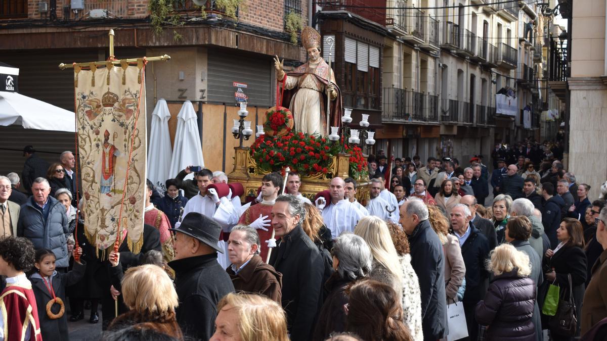 La imagen de 300 kilos de San Blas, rodeada por gente, ha ido aupada durante la media hora larga que ha durado la procesión por diversos vecinos del municipio y, para terminar, y entre el clero y la banda de música que dirige Christian Pérez, ha aparecido la corporación municipal con Juan Carlos Castillo al frente. Hasta la localidad ribera, además, se han desplazado Javier Remírez, vicepresidente primero, consejero de Presidencia e Igualdad y portavoz del Gobierno; Mª Carmen Maeztu, consejera de Derechos Sociales, Economía Social y Empleo; parlamentarios, así como representantes políticos de la zona como Marta Ezquerra, alcaldesa de San Adrián; Rubén Medrano, alcalde de Azagra; y José Manuel Terés, alcalde de Andosilla.