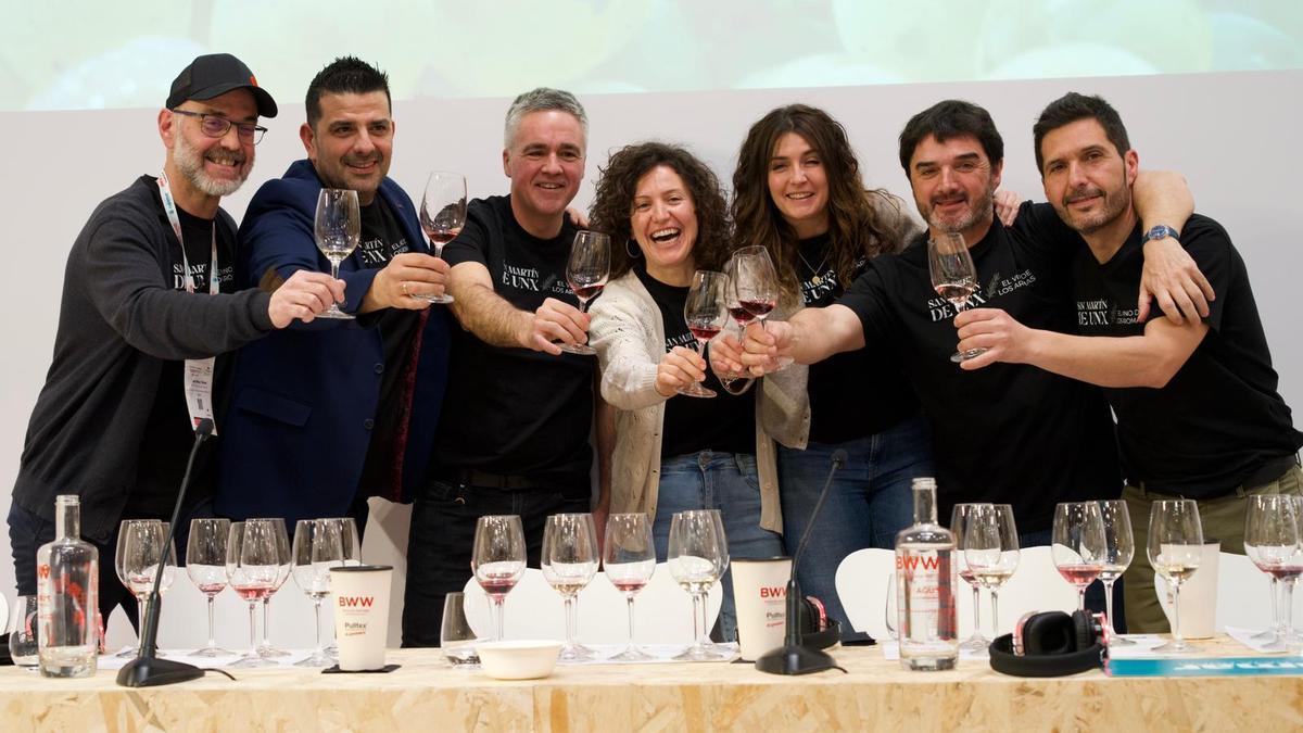 La Asociación Viñedos y Bodegas de San Martín de Unx ha presentado en el marco de la celebración de la Barcelona Wine Week su marca colectiva San Martín de Unx. El Vino de los Aromas, en una cata que ha reunido a 70 personas entre prescriptores, sumilleres y profesionales del sector vitivinícola interesados en descubrir una de las iniciativas más singulares del panorama vitivinícola del país. La sesión, celebrada en la Tasting Area del recinto ferial, estuvo dirigida por el viticultor y presidente de la Asociación, Julián Palacios, quien acompañó a los asistentes en un recorrido sensorial y territorial por los vinos que integran la marca.