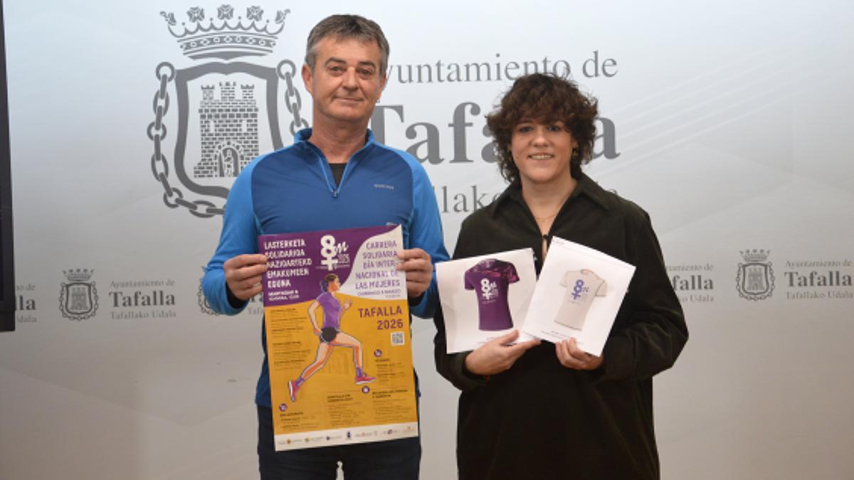 El Ayuntamiento de Tafalla ha presentado este lunes una nueva carrera solidaria que se celebrará el próximo 8 de marzo con motivo del Día Internacional de la Mujer. Se trata de una iniciativa novedosa dentro de la programación del 8M y organizada de manera conjunta por las áreas de Igualdad y Deporte. La concejala de Igualdad, Goizeder Juango, explicó que la prueba está abierta “a toda la población en general, independientemente de que la persona sea mujer u hombre, así como la edad”. Cada participante podrá completar el recorrido corriendo, andando o al ritmo que prefiera. La carrera contará con dos distancias: una de 3 kilómetros y otra de 6 kilómetros, esta última consistente en dar dos vueltas al mismo circuito urbano. La salida será a las 12.00 horas desde la Plaza de Navarra, punto habitual de encuentro en la localidad.
