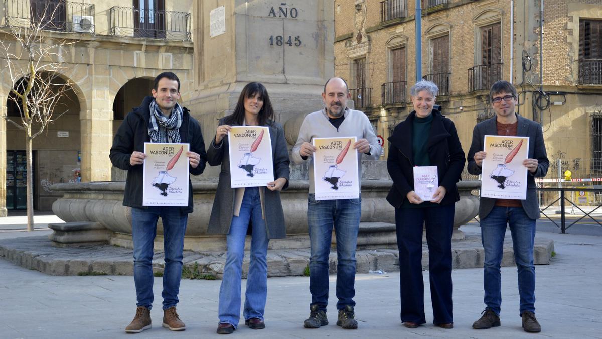 El Ayuntamiento de Tafalla acogió este miércoles la presentación de la novena edición del certamen literario en euskera Ager Vasconum, dirigido a jóvenes euskaldunes de entre 12 y 30 años residentes en el centro y sur de Navarra. En la rueda de prensa intervinieron el teniente de alcalde de Tafalla, Gontzal Ibarrola; el director gerente de Euskarabidea, Jabier Arakama; y la alcaldesa de Puente la Reina/Gares, Itziar Imaz.