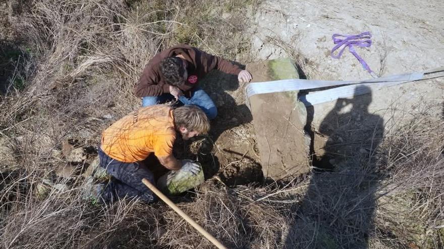Como relataron los arqueólogos en su informe, los trabajos se iniciaron en el lugar donde se había localizado un sarcófago de piedra arenisca, que dio motivo al descubrimiento. En el interior de dicho sarcófago había gran cantidad de huesos, sin ninguna disposición lógica, entre los que se contaron unos siete cráneos. “Estos restos estaban removidos y rotos, ya que la tumba había sido profanada inmediatamente después de su hallazgo”.
