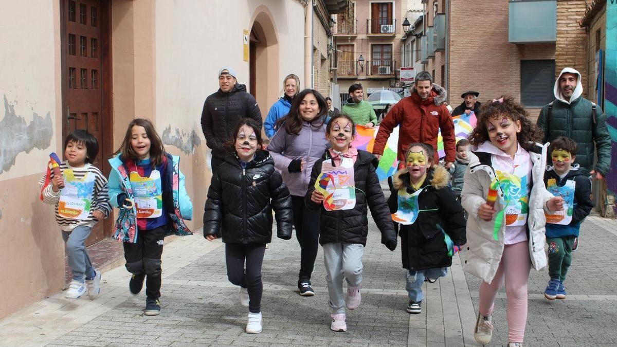Este sábado los peques de Cascante a pesar de que había una lluvia intermitente, disfrutaron dibujando, un par de madres les pintaron la cara de gatitos, de spider man, luego hicieron la korrika txiki saliendo de la plaza de los Fueros, haciendo un recorrido por calles aledañas y volvieron a la plaza de inicio, sobre las 13.00 horas hubo dantzas con la música de los gaiteros, hicieron una kalejira por los bares y a las 15.00 horas comida, el último acto fue la actuación de un Dj que comenzó a las 17.00 horas.