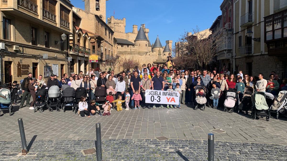 Varias familias de Olite se concentraron este martes por la tarde para reclamar una solución ante el cierre de la única guardería privada de la localidad, previsto para el próximo curso 2026-2027. Y es que la falta de una Escuela Infantil pública en el municipio deja a las familias con menores de tres años sin una alternativa clara de cara a septiembre. La movilización, convocada por las propias familias afectadas, se desarrolló con el objetivo de visibilizar la situación y pedir respuestas a las administraciones. Según explicaron, el centro actual cerrará en agosto debido a la falta de viabilidad económica, lo que afecta tanto a quienes ya tienen a sus hijos matriculados como a las nuevas familias que preveían inscribirlos.