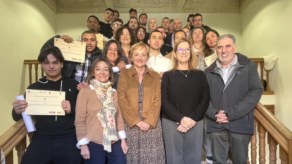 Impulsada por los Ayuntamientos de Marcilla, Peralta, Funes y Falces, así como por el Servicio Navarro de Empleo y el CNAI, han recogido sus diplomas en el salón de actos de la fortaleza marcillesa Roberto Álvarez, Naomy Cáceres, Akram Djoghlaf, Emmanuel Dacosta, Ángel Echeverría, Iosu Ezpeleta, Amaya Fabo, Rafael Fernández, Agustín Fernández, Marcos Fernández, José González, Aitor Fernández, Hodei Jiménez, Manu Sobreviela y Tatiana Martins. Junto a ellos y ellas también han estado el resto del claustro formado por Jesús Moreno (tutor), Katia Jiménez (administrativa), Iosu Ojer y Mohamed Assiali (profesores), así como representantes de las empresas en las que están haciendo las prácticas en la actualidad: Model Metal, Roiri, Ferosal 98, G.N.D., Kider Solutions, Dynamobel, Ferlo, Cytsa, Bolaños, Enimar, Selopin y Talleres Armendáriz.