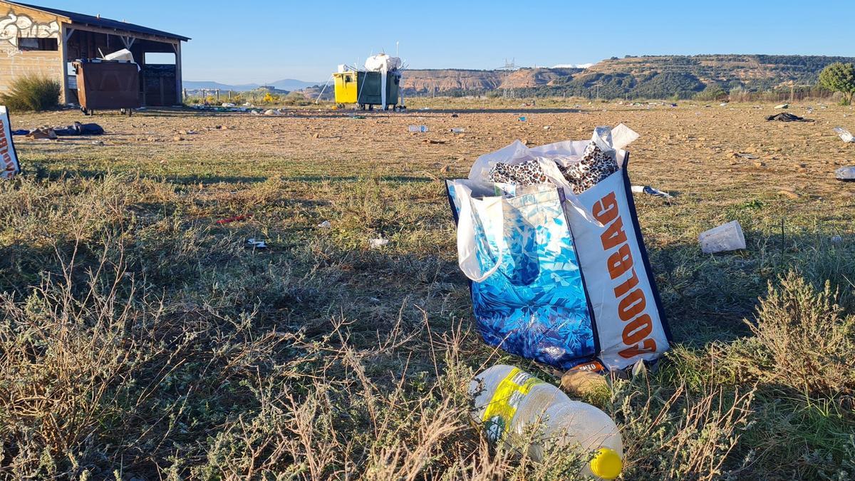 La imagen de este lunes era de mucha basura y residuos pero en su gran mayoría estaba situada en los contenedores que había colocado la Mancomunidad de Residuos, si bien estaban colapsados y se podía ver mucha basura por fuera, aunque nada que ver con lo de años anteriores. Fuera de contenedores había comida, jerseys, bolsas, comida, botellas, fundas de carpas, neveras, palets y otros objetos y aunque la imagen era impactante, era mucho mejor que en años anteriores, por lo que parece haberse dado un paso en la buena dirección, eso sí, sin que el Ayuntamiento haya querido implicarse para su solución. A primera hora incuso algún jabalí se alejaba del lugar por entre la zona empantanada del soto, después de buscar comida entre la basura dejada.